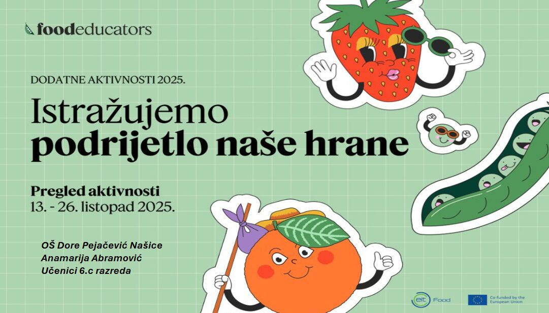Učenici su sklopu projekta Foodeducators pod mentorstvom učiteljica Leopoldine Vitković i Anamarije Abramović istraživali odakle dolazi naša hrana. Učenici su izabrali dvije namirnice; jednu lokalnu i jednu uvezenu, te su istražili odakle dolaze namirnice. Istražili su gdje se te namirnice proizvode ili uzgajaju. Izračunali su koliko namirnice putuju do RH, te su saznali kako uzgoj ili proizvodnja tih namirnica utječe na okoliš. Više o istraživanju pročitajte na poveznici.