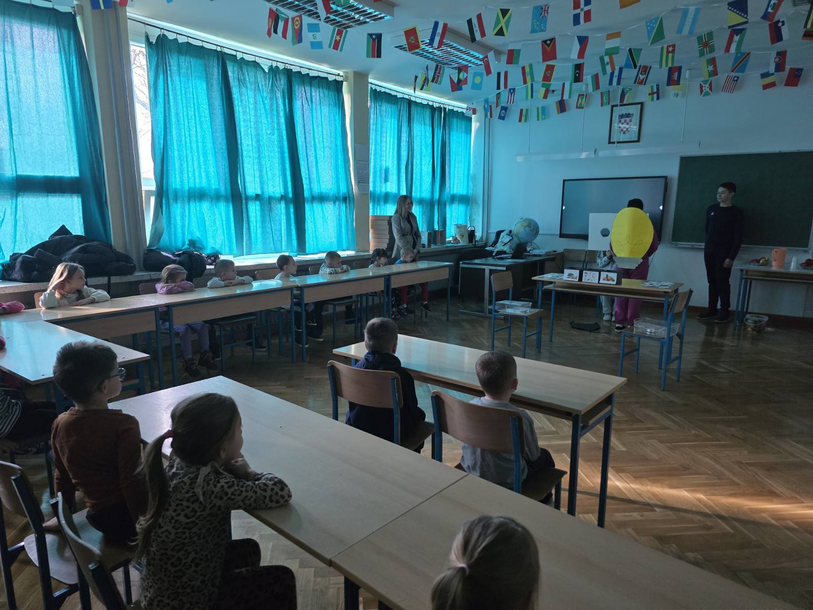 Sljedećeg dana posjetila nas je skupina Kruška gdje su uz vodstvo odgojiteljica Valentine Dervić i Viktorije Vladika istraživali temu Struja. Upoznali smo ih s likom i djelom Nikole Tesle kroz kratku i pristupačnu priču, a zatim smo im kroz igrokaz prikazali od čega se sastoji jednostavan strujni krug. Djeca su aktivno sudjelovala, postavljala pitanja i pokazala veliko zanimanje za svijet elektriciteta.