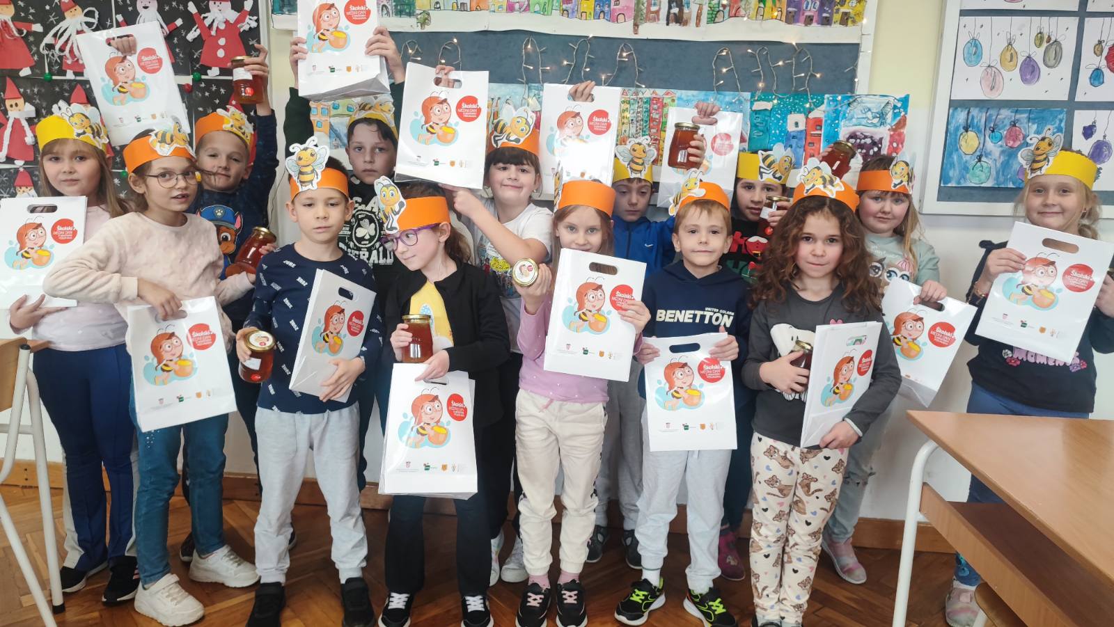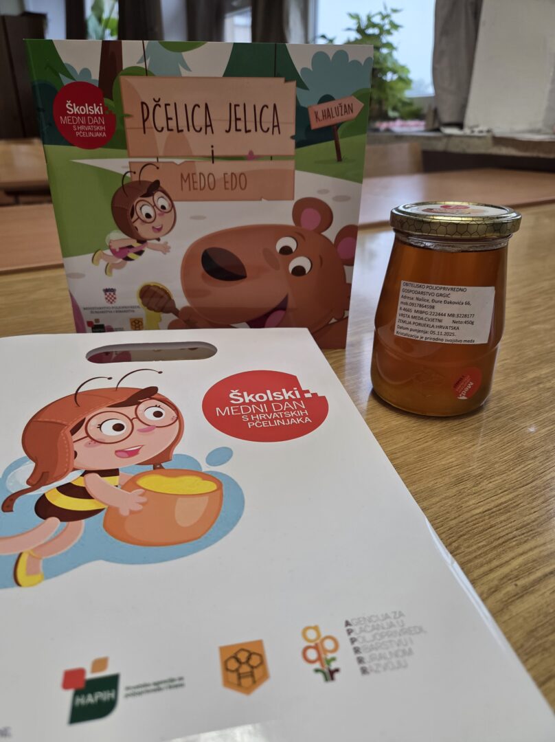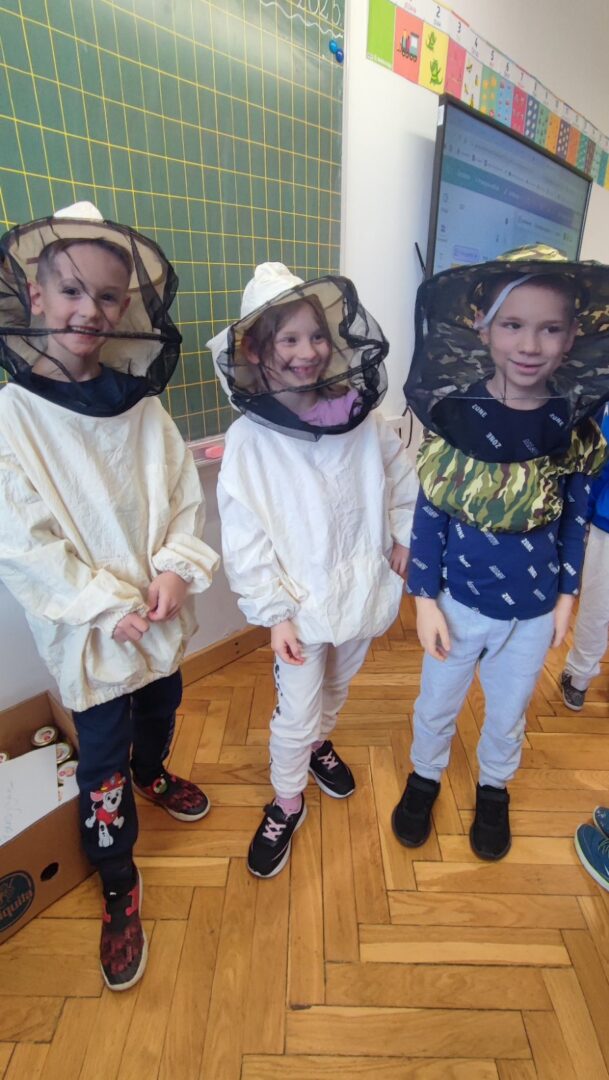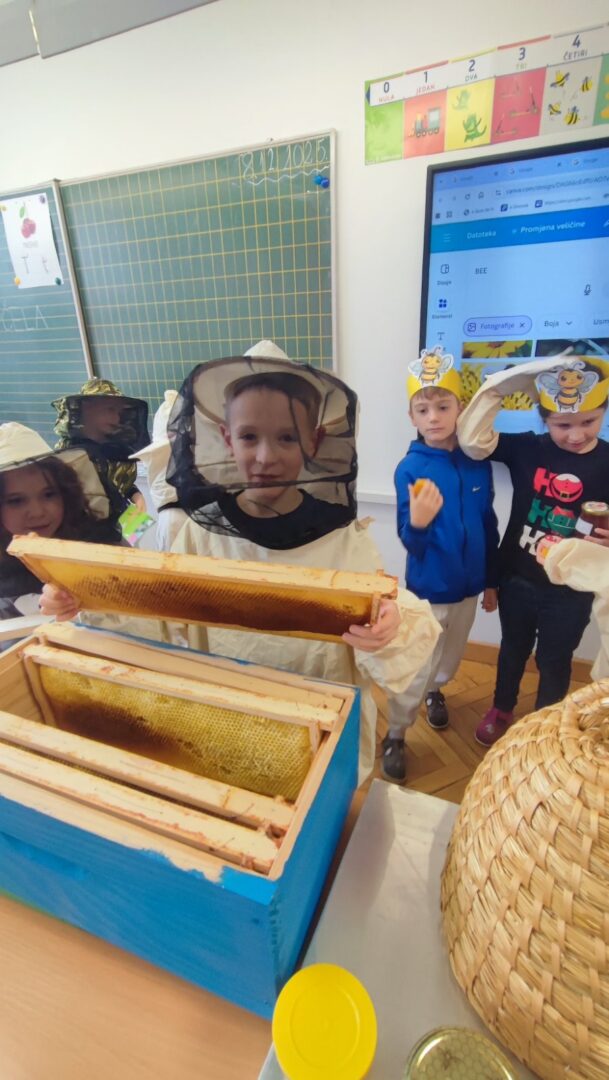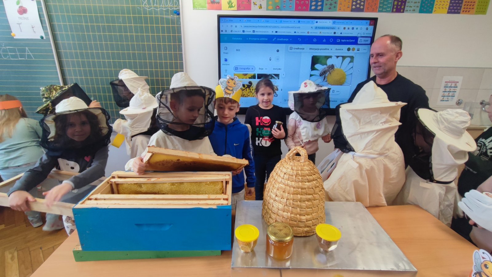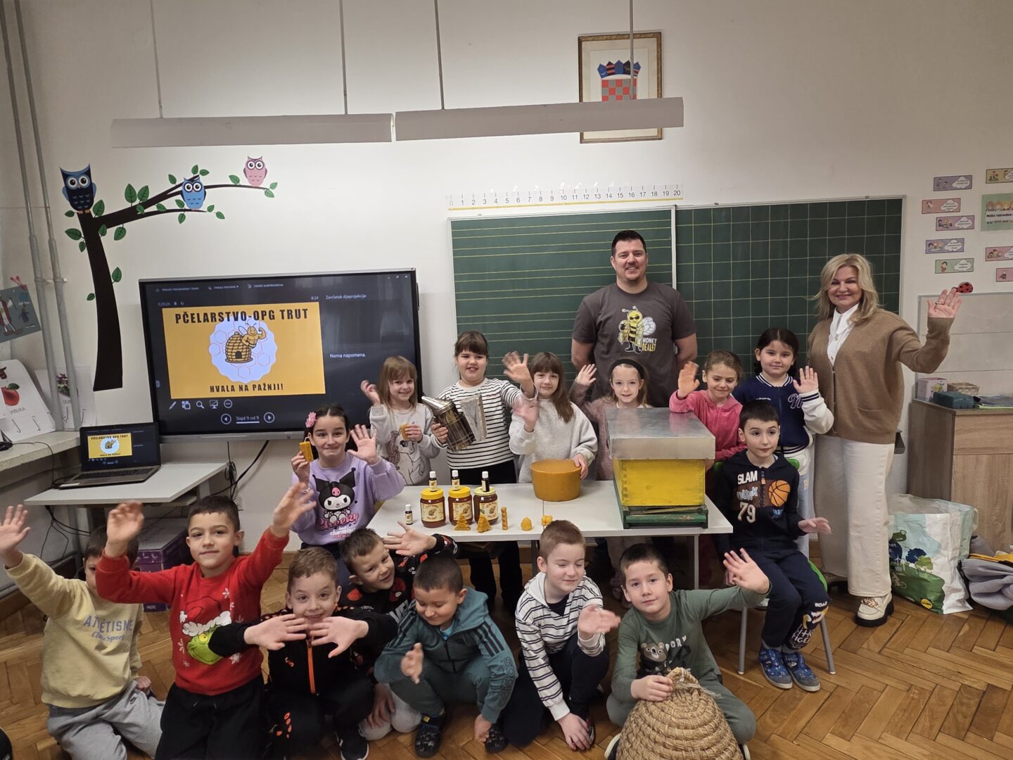 Učenike 1. c razreda posjetio je roditelj učenika, gospodin Zmajšek koji se bavi pčelarstvom te su učenici uz prezentaciju i prikaz pčelarskih proizvoda upoznali pčelarske pojmove: med, saće, košnica, matica…; vidjeli su opremu pčelara, mirisali vosak…i zasladili se slatkom poslasticom, medom i kruhom!