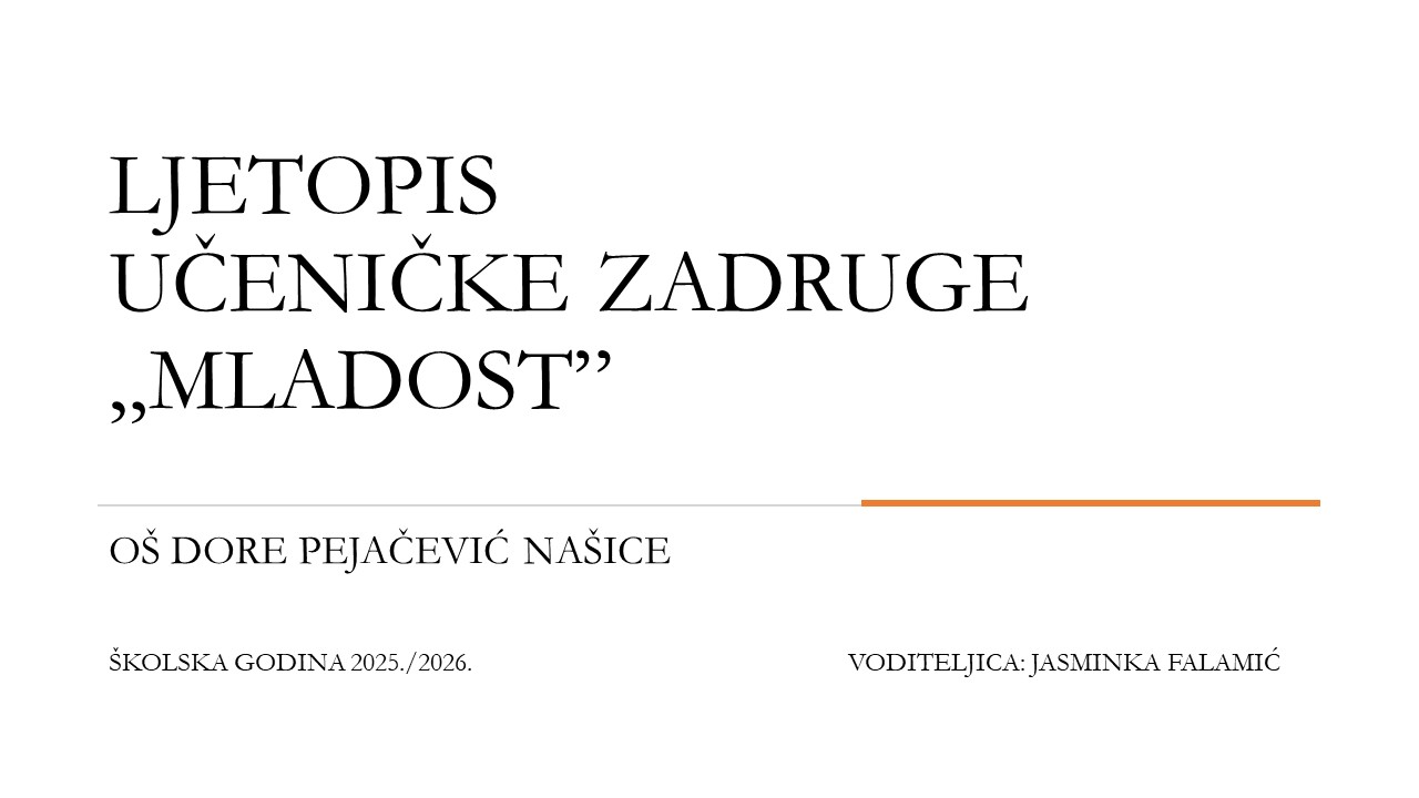 U školskoj godini 2025./2026., naša učenička zadruga „Mladost“ broji 132 učenika i 10 učitelja koji aktivno djeluju u 10 sekcija izvannastavnih aktivnosti. Voditeljica zadruge je Jasminka Falamić.
