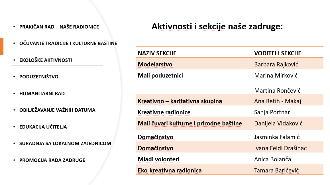 Područje rada naših sekcija: