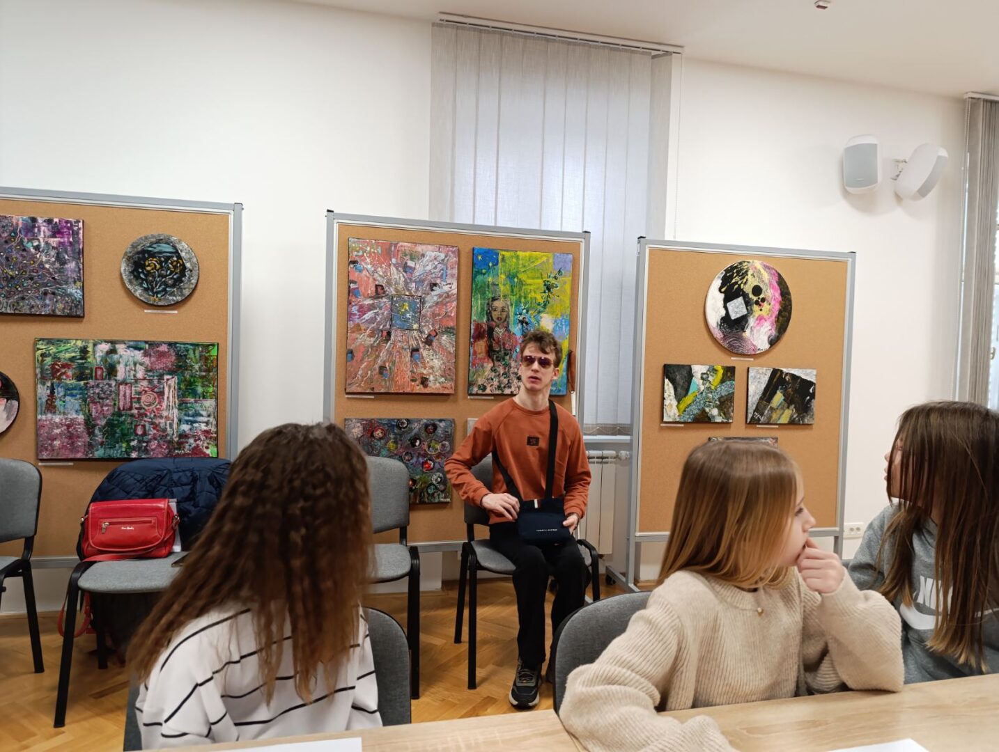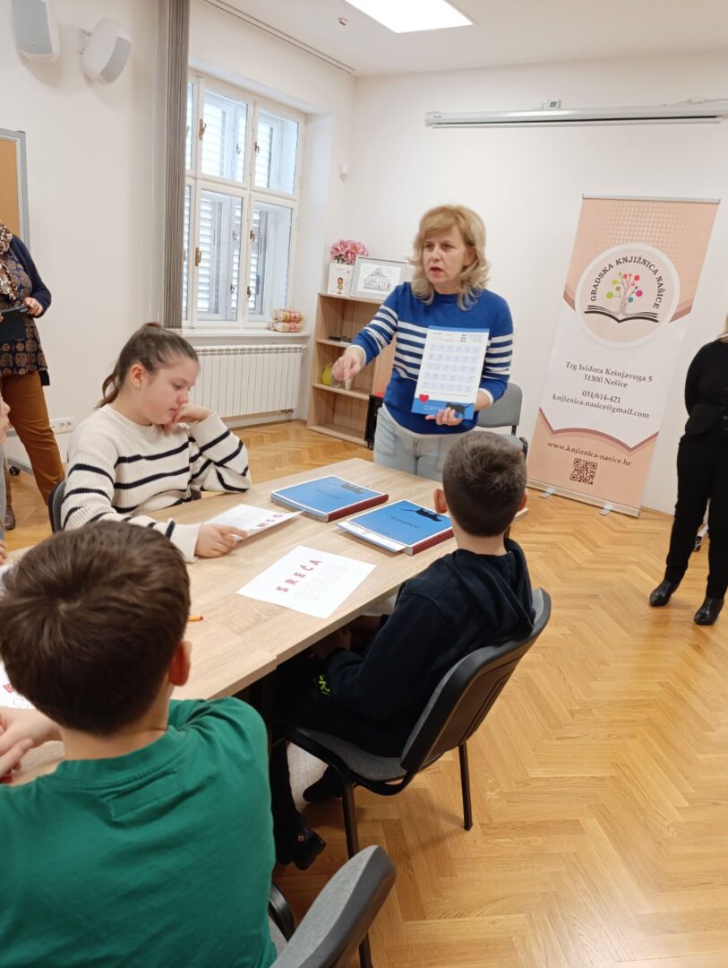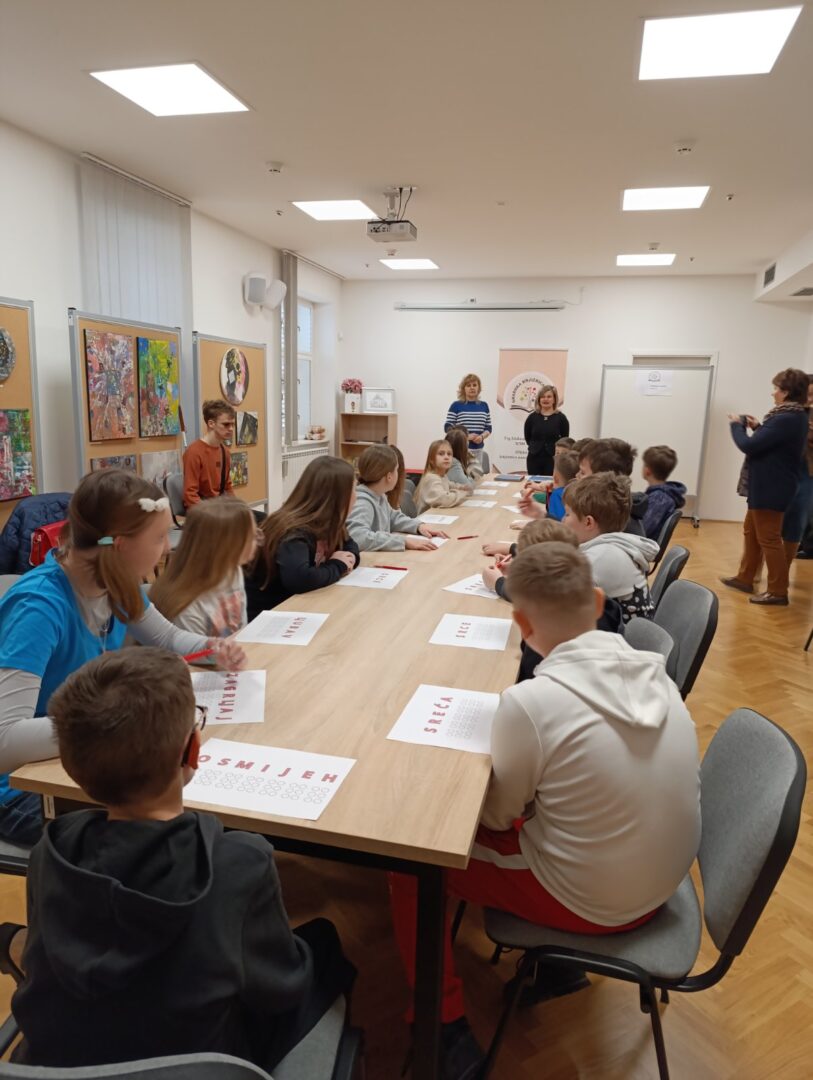 Nakon ispisivanja i upoznavanja s brajicom, član Udruge slijepih Našice, Borna Bela, razgovarao je s djecom o svom učenju pisanja na brajičnom pismu, ljubavi prema glazbi i sviranju bubnjeva.